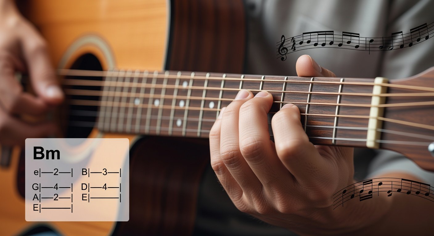 Chords form the backbone of most songs. Beginners should master open chords: E minor, A minor, C major, G major, D major, and E major (the 'EAGDC' cowboy chord cycle).